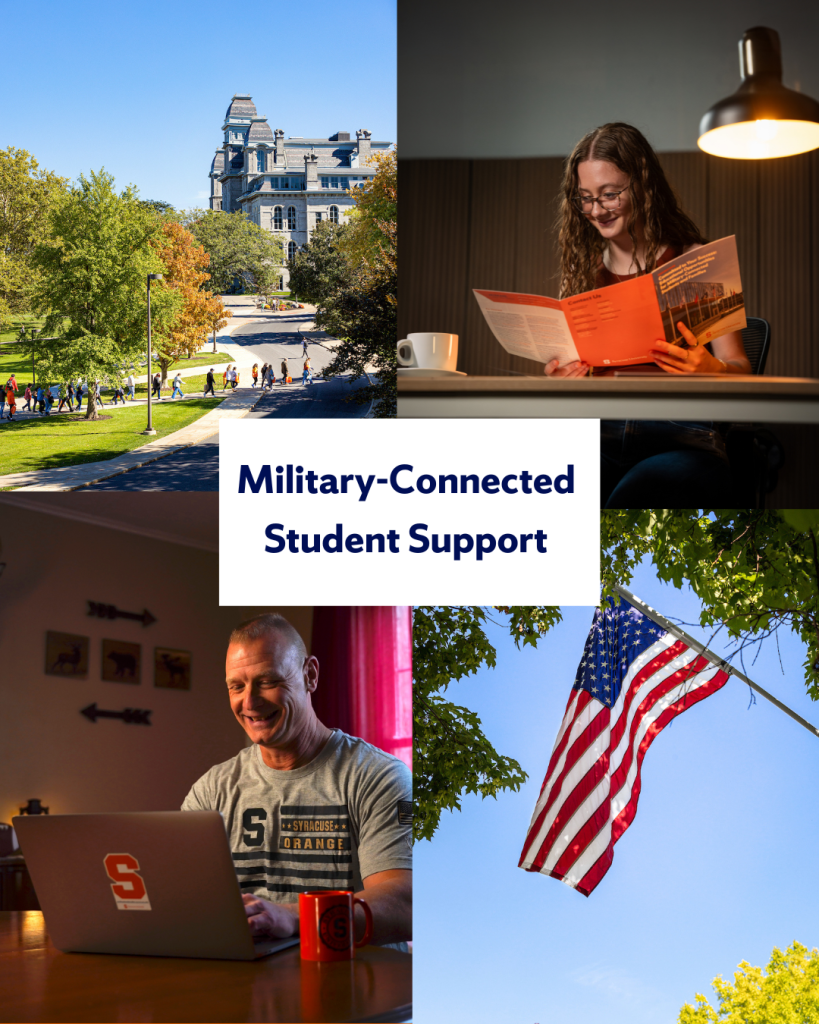 Military Family Support: Veteran and military-connected student support is critical to academic and personal success. Whatever your student issue is, Syracuse University has a solution.