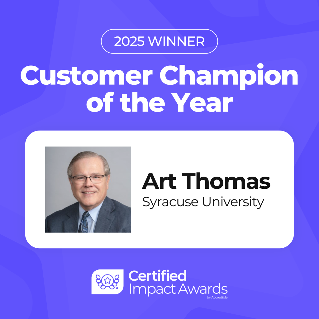Arthur Thomas, Executive Director of Microcredentials has been named a winner in the Certified Impact Awards 2025, presented by Accredible, the world’s leading digital badging platform. Thomas received top honors in the Customer Champion of the Year category, which recognizes an individual who has gone above and beyond to champion Accredible through public advocacy, peer support, platform feedback, and community participation.